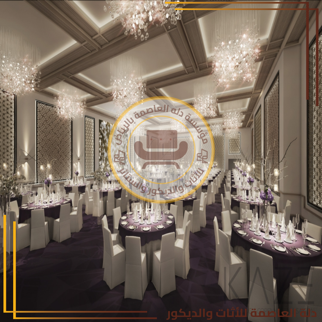تختص مؤسسة دله العاصمة بتقديم خدمة تصميم وتفصيل كراسي قاعات الأفراح وفرشها بما يعكس أجواء الفخامة والتميز في المناسبات الخاصة يعمل فريقنا من أفضل الفنيين في ورشتنا المجهزة لتصميم وتنفيذ كراسي وقطع فرش تناسب ذوق كل عميل، مستخدمين أجود الخامات لتحقيق أعلى معايير الراحة والأناقة نحن نهتم بالتفاصيل الدقيقة لضمان أفضل النتائج وتهتم المؤسسة بتقديم خدماتها بأفضل الأسعار